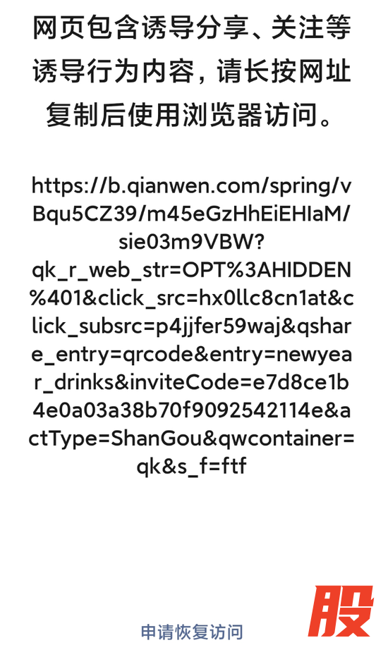 值得注意的是,继微信封杀自家腾讯元宝、百度文心助手后,千问的红包分享链接也被微信屏蔽,页面显示网页存在诱导或误导下载/跳转的内容,需要跳转第三方浏览器访问。同时,部分用户在千问APP点击分享活动至微信好友时,已自动改为复制口令形式。